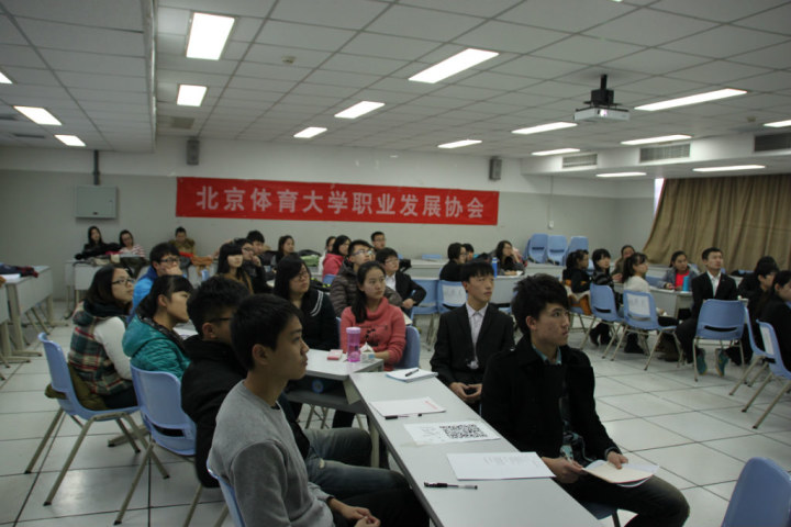 课上更是精彩纷呈,轻松活跃的课堂氛围让同学们很快融入其中。首先,北京励合力拓体育发展公司(J&D)创始人之一、体大本硕毕业生李姣简要进行了主讲老师和主办公司J&D的介绍。随后,破冰活动进行,课程正式启动。同学们在讲师的带动下,纷纷拿出手机,以微信“摇一摇”的形式找到了自己的新朋友们,并组建成五个小组,每个成员都用约一分钟时间向大家进行了自我介绍和感兴趣的部门职位,起初的沉默被朝气蓬勃的话语打破。