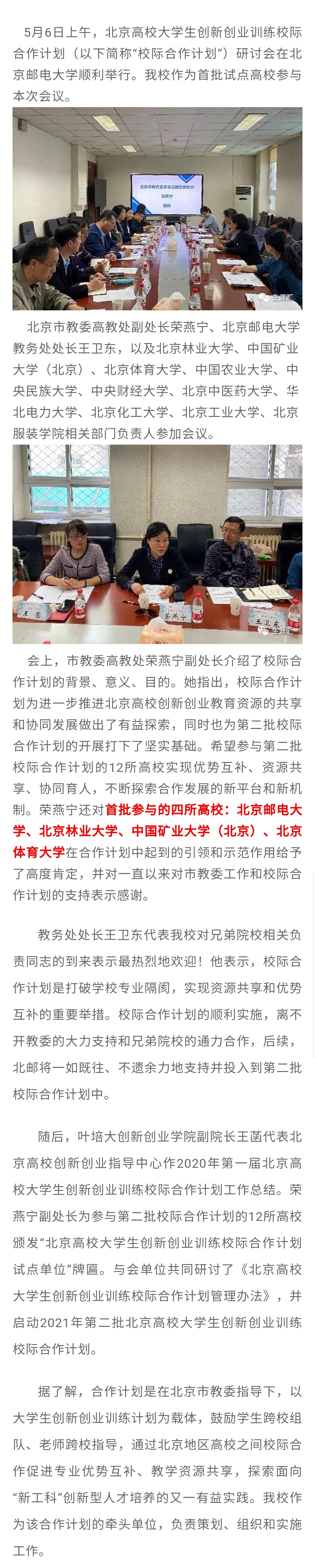 北京体育大学作为首批试点院校参加北京高校大学生创新创业训练校际合作计划研讨会